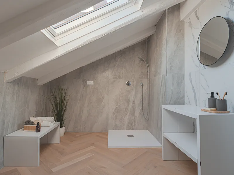 - Sottotetto trasformato: da spazio indefinito a camera-studio sfruttabile e accattivante.