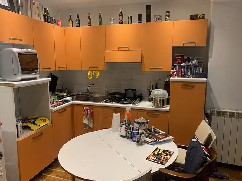 San Michele 33 era uno di quegli appartamenti pieni di potenziale, ma… anche pieno di fumetti, scatoloni e caos.